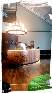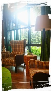 Die Lobby des Berg- und Jagdhotels Gabelbach ist großzügig, hell und mit freundlichen Leuten besetzt. Grün- und Brauntöne dominieren – ein Mix aus rustikalem Charme und modernem Design, der mir sehr gefällt. Mein gebuchtes Einzelzimmer liegt im Neubau, alles frisch renoviert und sauber. Die bodentiefen Fenster gehen raus zum Hotelpark – grüne Wiese, dunkler Wald und frische Luft. Die Sache mit dem durchgängig einwandfrei funktionierenden Wlan ist ausbaufähig… Aber ach, ich mache ja gerade Wellness. Und weil ich mich noch viel mehr entspannen will, werfe ich mich gleich in den weißen Bademantel, der so ordentlich gefaltet auf meinem bequemen Bett liegt, und erkunde den Spa-Bereich des Hotels!