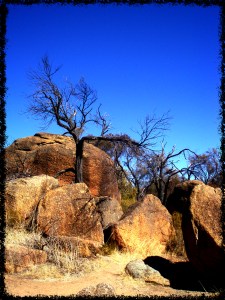 Obwohl gerade Osterferien waren, hatten nicht sehr viele Leute den Weg zum Wave Rock auf sich genommen. Und so hatte ich diese atemberaubende Natur-Schauspiel fast ganz für mich alleine. Die mächtige Granit-Formation (15 m hoch/110 m lang) soll etwa 3 Mrd. Jahre alt sein. 3 Mrd. Jahre! Über eine Treppe gelangt man auf den Kamm der Welle. Von oben hat man einen tollen Blick in die Umgebung, kann herumlaufen, weitere Steinformationen bestaunen und mit etwas Glück ein paar kleinen Echsen begegnen, die sich im Schatten der Felsen niederlassen. Aufs Foto habe ich die Urtiere nicht bekommen, einfach zu flink die kleinen Biester…