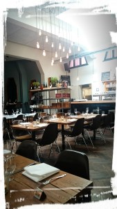 Und wer – so wie ich – beruflich mit schönen Möbeln, stylisher Dekoration und modernem Interieur zu tun hat, ist im DOM sehr gut aufgehoben. In Karlsruhe gibt es wenige Läden, die so chic sind! Schlichte Lampen ohne Schirm, rustikale Holztische, chillige Nischen und eine coole Bar machen schon einmal Lust auf mehr! Im hinteren Teil des Raumes steht zudem ein Reifeschrank für Fleisch – für Liebhaber ein echter Hingucker.