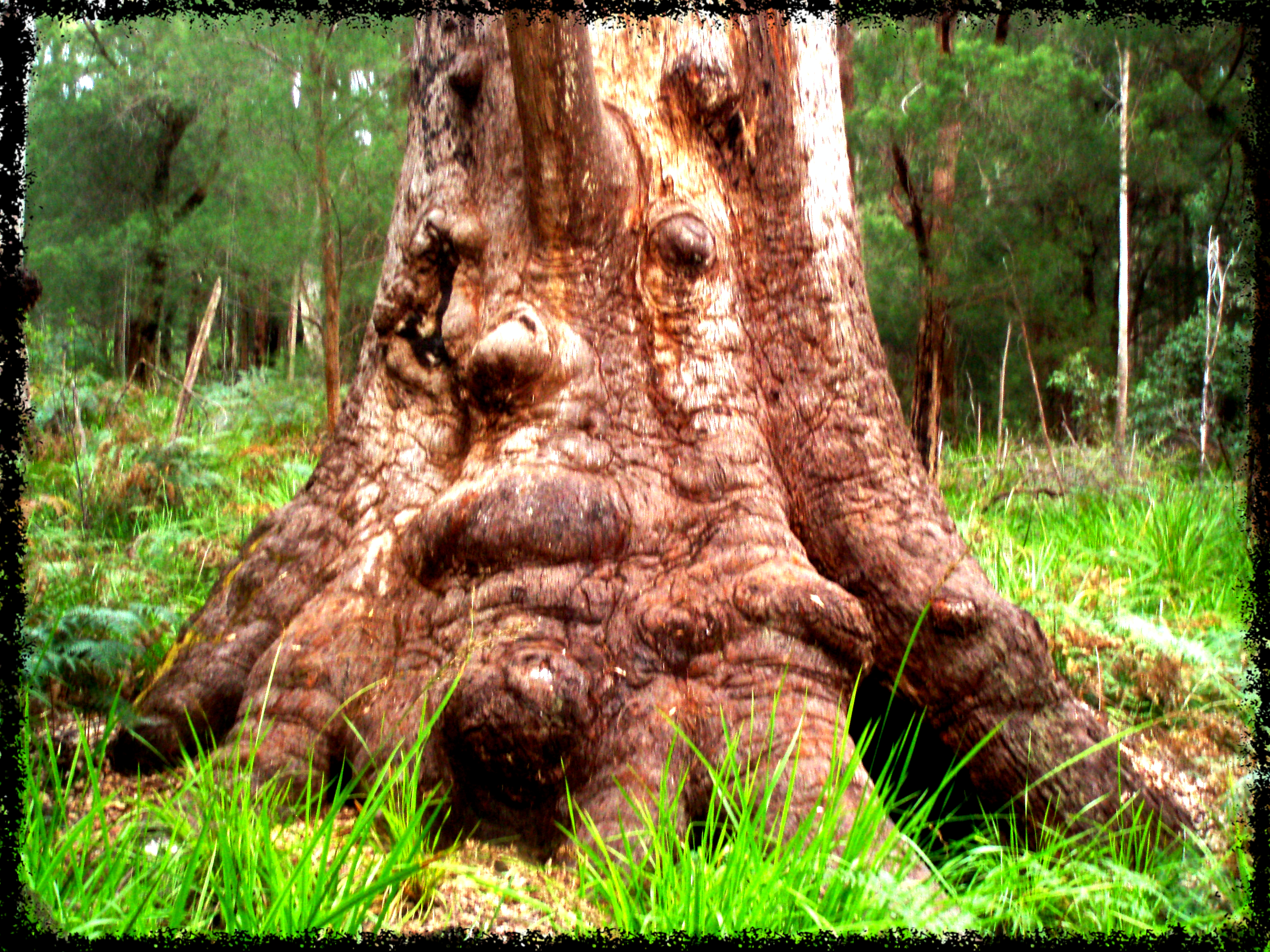 Das „Valley of the Giants“ liegt etwa fünf Stunden südlich von Perth, ganz in der Nähe des kleinen Städtchens Denmark. Die riesigen Eukalyptus-Bäume, die es so nur hier gibt, sind über 400 Jahre alt und werden bis zu 40 Meter hoch! Der Umfang ihrer Stämme mit den mächtigen Wurzeln kann in Bodennähe schon mal 15 Meter betragen. Manche Riesen stehen auf einem holen Stamm, man kann durch sie hindurch spazieren. Die Wurzel jedes Baumes gliedert sich in mehrere „Zehen“, wenn der Blitz einschlägt – und das passiert hier öfter -, brennt der Stamm innen aus, die „Zehen“ bleiben aber fest verankert im Boden stehen.