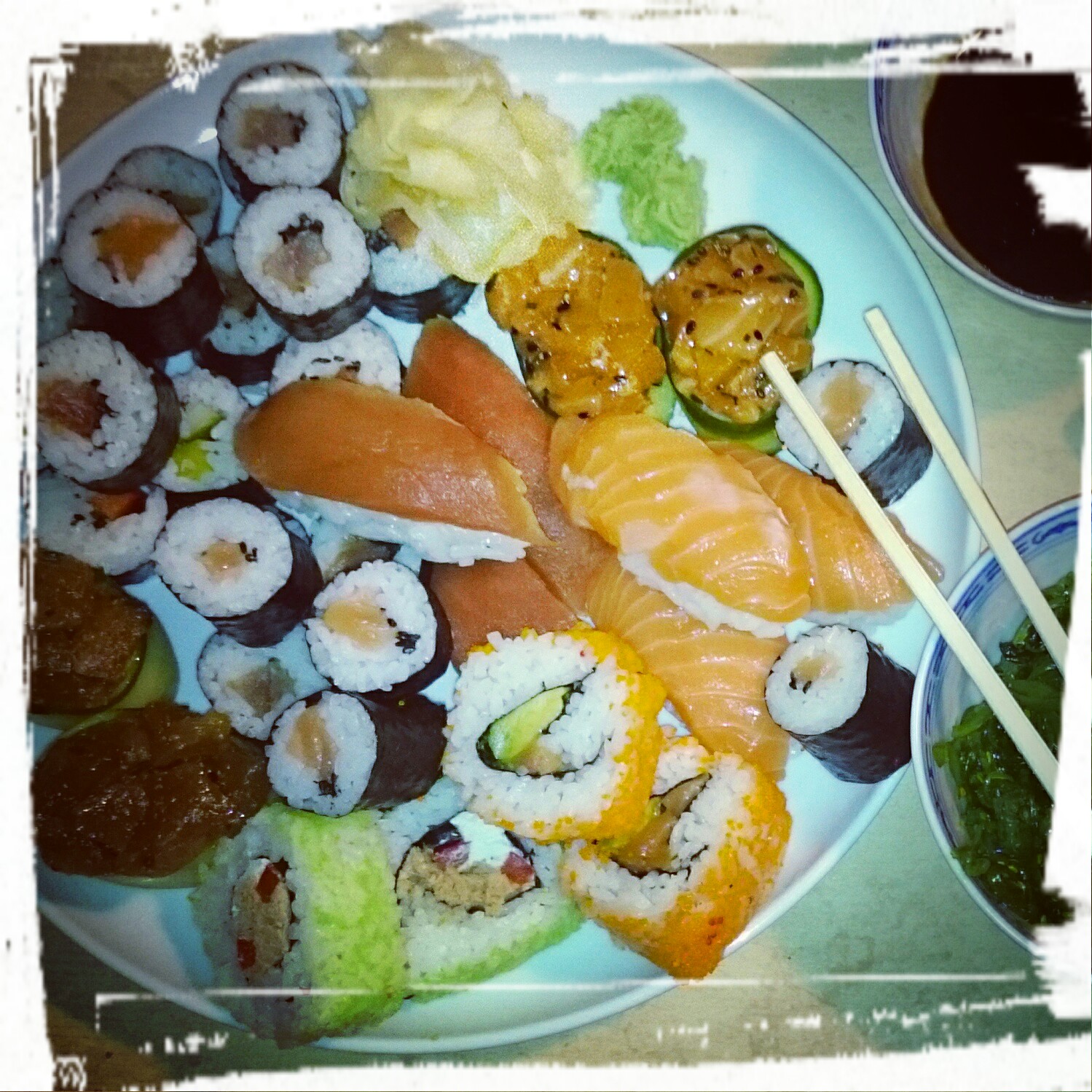 Am Donnerstag gab’s Sushi! Ziemlich viel Lachs und Thunfisch. Gerollt und gelegt. Ein bisschen Sashimi dazu und meine geliebten grünen Algen. Alles war super frisch und saftig. Den ganzen leckeren Berg von Nah Sushi in Ettlingen hab ich aber nicht alleine verputzt! Wirklich nicht!