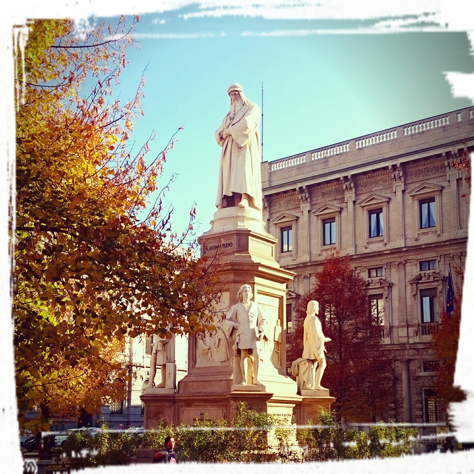 Piazza della Scala mit Leonardo-Statur